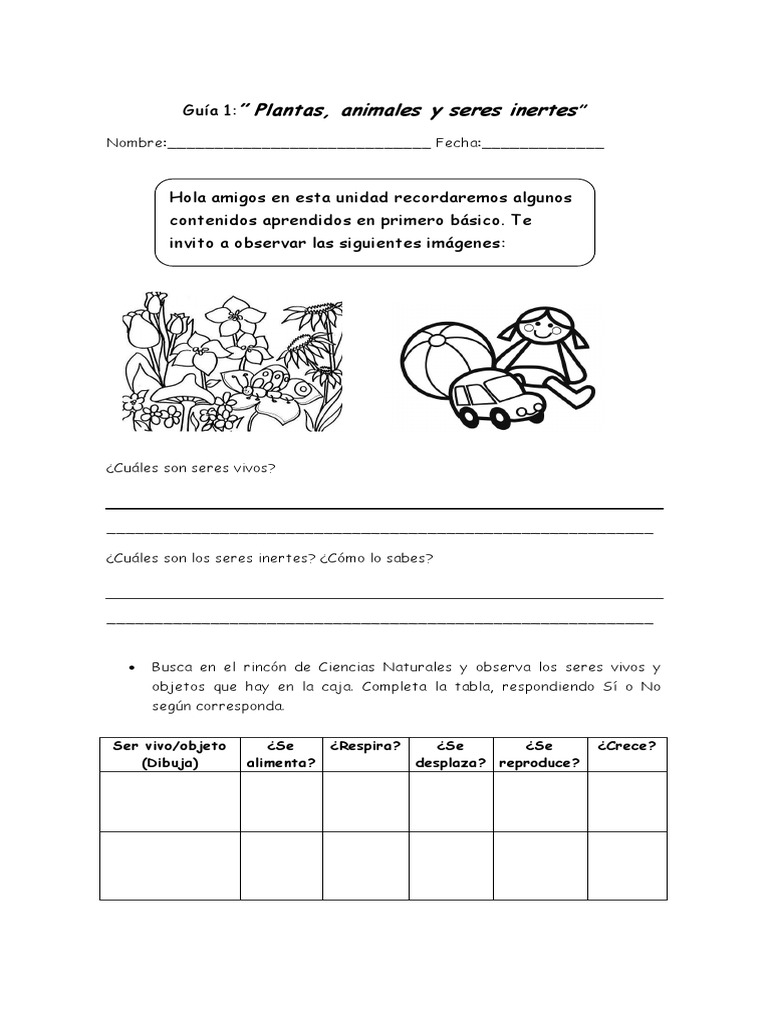 Gua 1: Plantas, animales y seres inertes