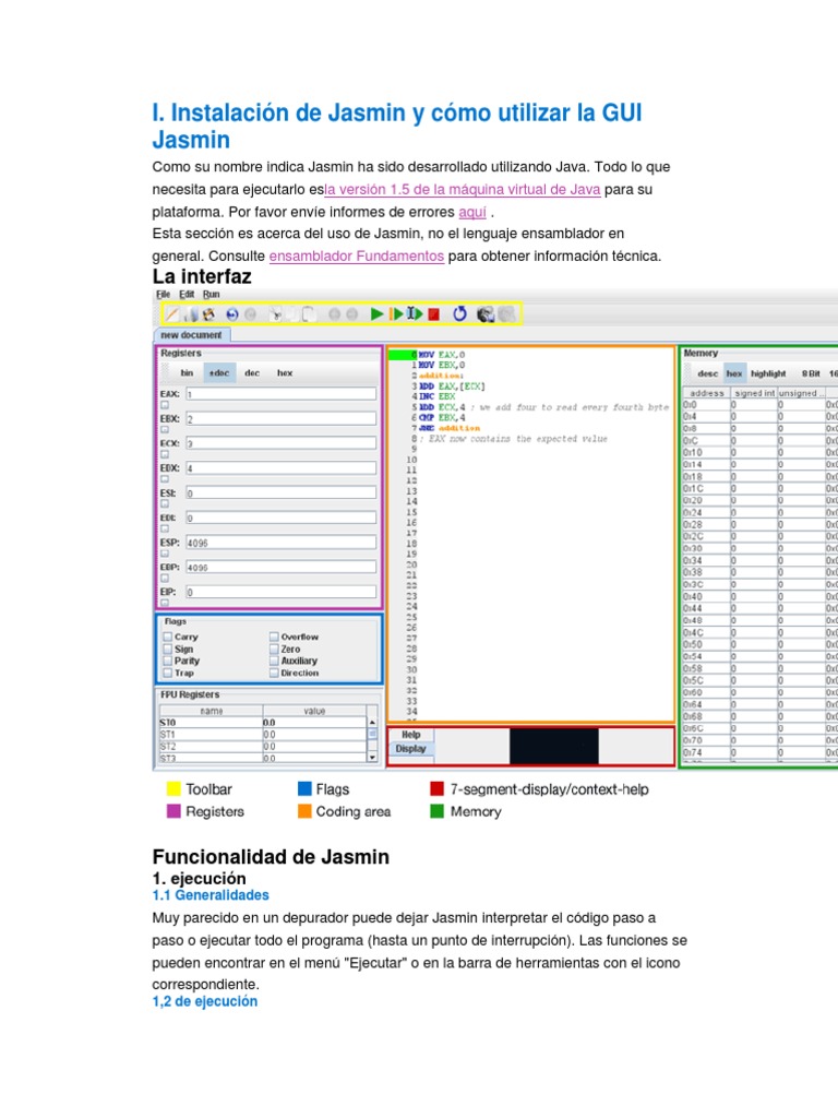 La principal diferencia es que Jasmin interpreta el cdigo y el cdigo no se almacena en la memoria. As que tenemos dos nmeros de lnea y las direcciones de memoria que no son el mismo como en un sistema real.