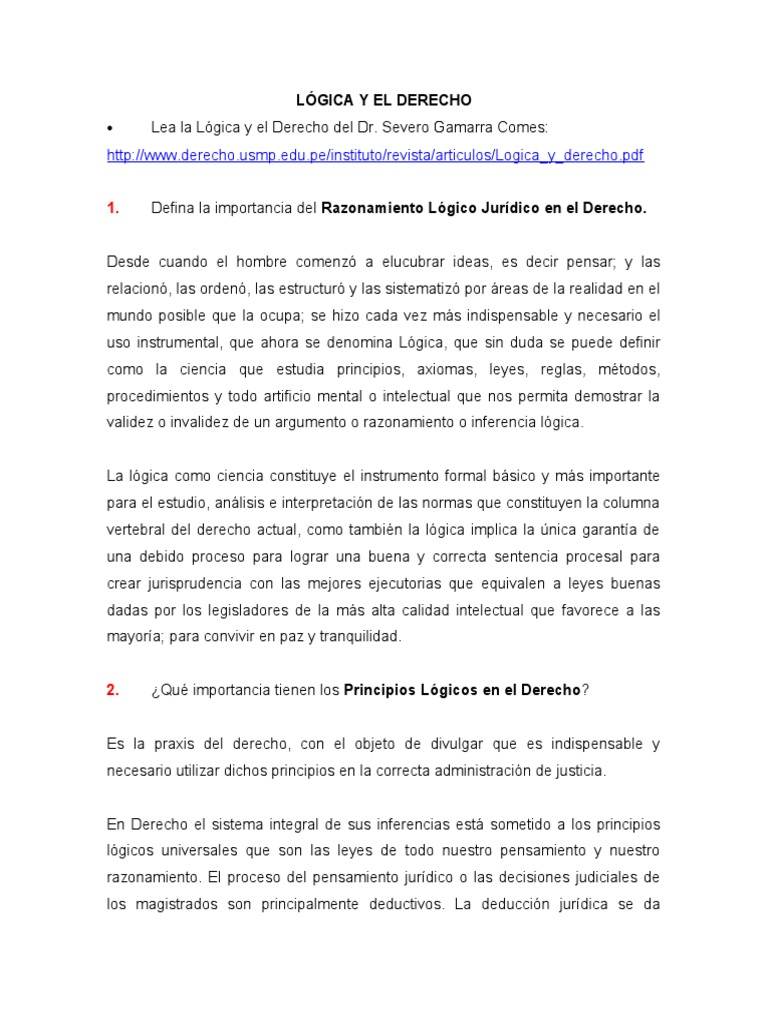 http://www.derecho.usmp.edu.pe/instituto/revista/articulos/Logica_y_derecho.pdf 1. Defina la importancia del Razonamiento Lgico Jurdico en e Derec!o.