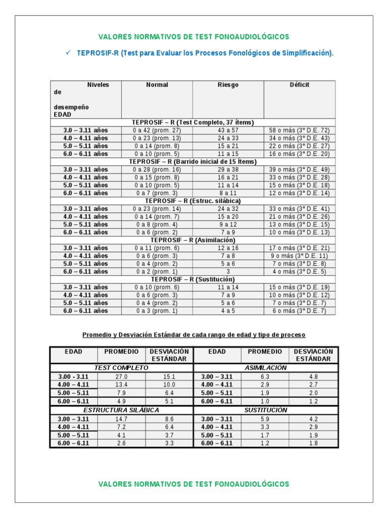 VALORES NORMATIVOS DE TEST FONOAUDIOLGICOS