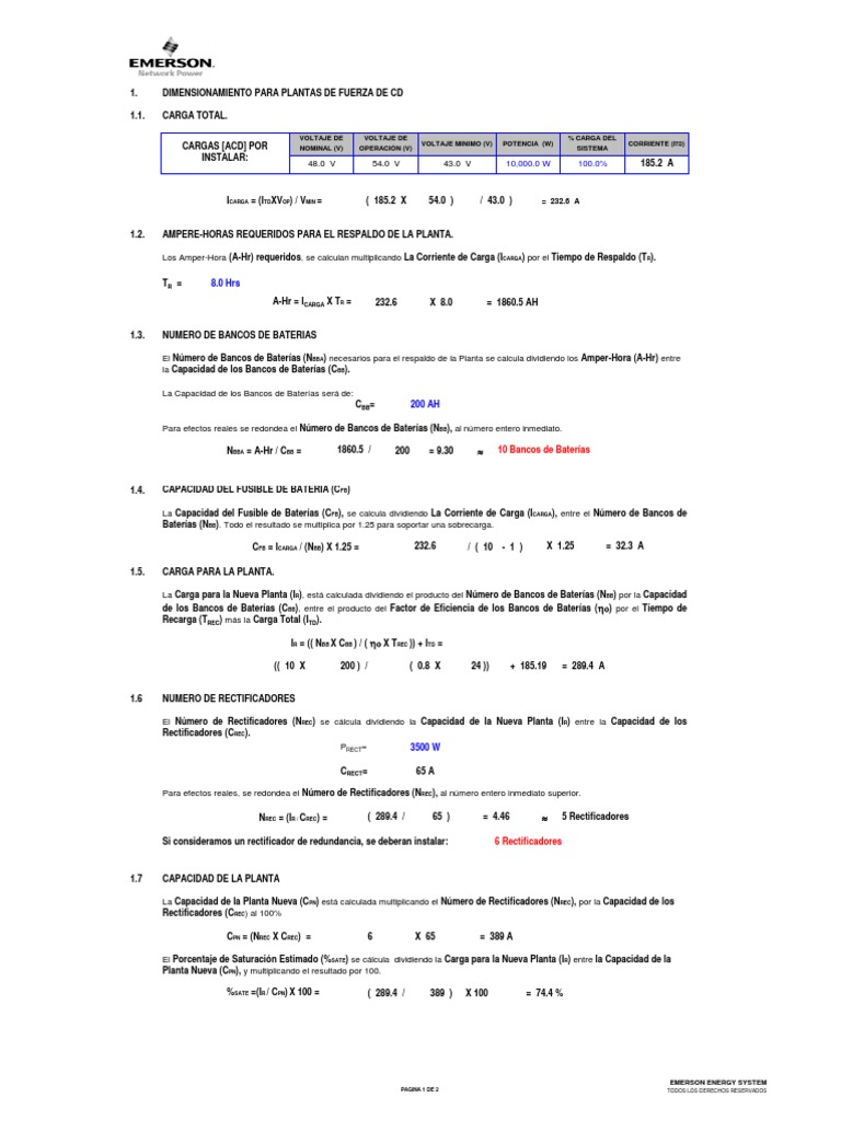 DIMENSIONAMIENTO PARA PLANTAS DE FUERZA DE CD CARGA TOTAL.