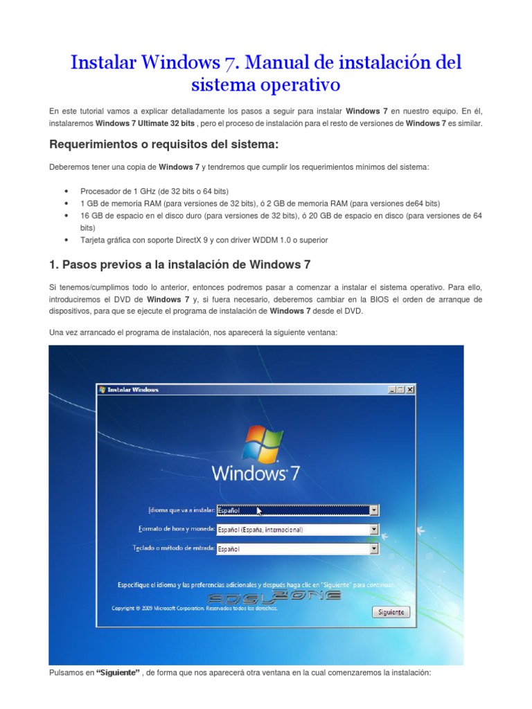 En este tutorial vamos a explicar detalladamente los pasos a seguir para instalar Windows 7 en nuestro equipo. En l, instalaremos Windows 7 Ultimate 32 bits , pero el proceso de instalacin para el resto de versiones de Windows 7 es similar.