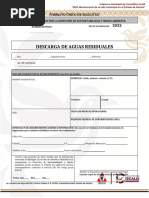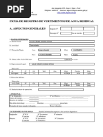 Origen de descarga identificada por: Zona, Proceso o Actividad. Tipo de Descarga: Agua Residual Domstica (ARD), Agua Residual Industrial (ARI), Aguas Lluvias (ALL), mezcla de estas. Frecuencia de la Descarga: Continuo o Intermitente. Caudal: Cantidad de m3 aforados en la descarga, determinarlo por un perodo de un mes. Tiempo de duracin de la descarga: Indicar el nmero de horas que dura la descarga. Cuerpo Receptor: Alcantarillado, Corriente superficial, Tanque Sptico, Infiltracin en el suelo.