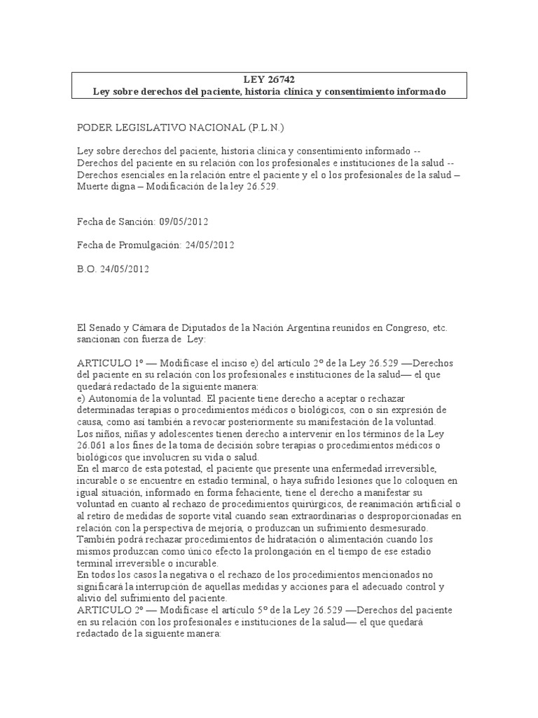 ARTICULO 2 ModiIicase el articulo 5 de la Ley 26.529 Derechos del paciente