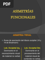 -El paciente es incapaz de sealar con una mano el lugar contralateral del cuerpo que ha sido tocado por el examinador (sobre todo en la regin distal de los miembros donde la representacin cortical es unilateral). -En la estimulacin de un dedo de una mano, no puede indicar cual fue tocado moviendo su dedo homlogo contralateral. -No puede localizar con una mano a un objeto que ha sido tocado por la mano contralateral entre varios otros. -El reconocimiento de objetos biotridimensionales palpados, son reconocidos con mayor dificultad por la mano derecha. -El paciente es incapaz de reproducir en un miembro, la postura impresa pasivamente al miembro contralateral. [Link] del procesamiento de los datos visuales.