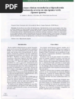 El hemisferio izquierdo posee una dominancia natural dentro de la realizacin de los gestos voluntarios requeridos bajo el comando e independientes del contexto. Pero de todas formas, los gestos rutinarios necesitan de una cooperacin entre los dos hemisferios y particularmente de la intervencin de los dispositivos hemisfricos derechos implicados dentro de la planificacin de secuencias, procesando la disposicin espacial de los diferentes objetos que son puestos en juego en el momento en que el contexto determina la [Link] lesiones anteriores del cuerpo calloso pueden tambin ocasionar apraxias melocinticas y dinmicas unilaterales izquierdas por una posible desconexin entre las reas promotoras. C. Imitacin de secuencias gestuales. Se afecta la capacidad de imitar secuencias gestuales complejas de los movimientos de los miembros o de la cara. La callosotoma completa o de los dos tercios anteriores junto a la comisura blanca anterior perturba la reproduccin de estos dos tipos de manera bilateral. D. Signo de la mano extranjera y apraxia diagonstica. Descrita por Brion y Jedynak, trata de la incapacidad de reconocer la mano derecha cuando la izquierda la toma