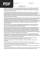 El concepto de vdeo es igual a del sonido. Aunque parezca que es mas sencillo el grabar una foto en la teora, en la practica ocurre todo lo contrario, si una imagen de 640x480 (resolucin habitual) con 256 colores ocupa 300 Kb. de espacio. Tambin ocurre si querremos que pasen varios fotogramas de una pelcula este problema se hace mayor. Por lo tanto, tenemos que considerar que el tema de vdeo es muy importante y la configuracin del propio equipo. Tambin puede influir que el lector de CD-ROM sea mas lento. Los archivos de vdeo tienen [Link]. Windows 95-98 permite ejecutar adems de esta extensin la [Link], si se incorpora el programa Quicktime for Windows. Estos son los que ms se utilizan pero existen otras extensiones que tambin se pueden utilizar si se incorpora tarjetas para este fin. [Link] DE WINDOWS 95-98 Windows 95 termin por salir a la venta el 24 de Agosto de 1995 , debido a muchos retrasos de varias horas antes. An as tuvo mucho xito, sobre todo por las nuevas caractersticas que tara, como son:
