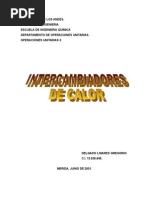 Eficiencia, y poder caracterizar el sistema y los procedimientos de medicin de la energa especifica. 1.3 Definicin: El intercambiador de calor constituye una parte esencial en los sistemas de refrigeracin, acondicionamiento de aire y produccin de energa. Un intercambiador es, por ejemplo, el radiador del motor de un coche en el que el fluido refrigerante, calentado por la accin del motor, se refrigera mediante una corriente de aire que fluye sobre l y que, a su vez, reduce la temperatura del motor, re circulando por el interior del mismo. - Clasificacin de intercambiadores de calor: Los intercambiadores de calor pueden clasificarse de la siguiente forma: Intercambiadores de contacto directo: