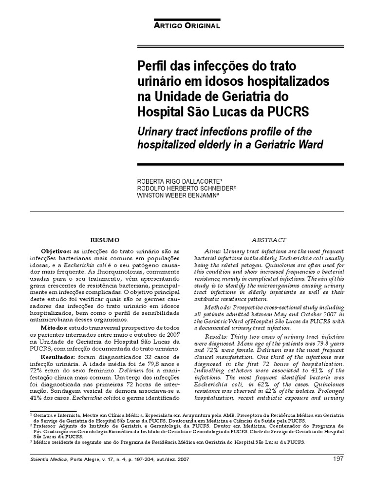 Perfil das infeces do trato urinrio em idosos hospitalizados na Unidade de Geriatria do Hospital So Lucas da PUCRS