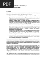 Erradicacin de la pobreza Cambio de patrones insostenibles de consumo y produccin Produccin y proteccin de la base natural de recursos Finalmente, el desarrollo sostenible ha surgido como uno de los ms prominentes paradigmas de desarrollo de las ltimas cuatro dcadas. Su objetivo es brindar un enfoque holstico que involucre varias dimensiones como la econmica, medioambiental, social y el desarrollo participativo dentro de un marco nico. Recin en los ltimos aos hemos visto un crecimiento de la institucionalizacin del desarrollo sostenible a un nivel internacional. Ro+20 En el ao 2009, la Asamblea General de las Naciones Unidas (UNGA por sus siglas en ingls) decidi organizar en el 2012 la Conferencia de las Naciones Unidas sobre el Desarrollo Sostenible al ms alto nivel posible, incluyendo Jefes de Estado y Gobernantes u otros representantes, y en este sentido acepta con gratitud el generoso ofrecimiento del Gobierno de Brasil para ser sede de la Conferencia (prrafo 20 de la resolucin A/RES/64/236), Objetivos Los objetivos de Ro +20 cubren un vasto terreno en cuanto a los debates polticos y a los posibles resultados. El primer objetivo es asegurar la renovacin del compromiso poltico para el desarrollo sostenible. En el contexto de las numerosas crisis, slo ha habido un tibio compromiso poltico para el desarrollo sostenible y las ms relevantes negociaciones parecen atraer muy poco a los Jefes de Estado (con la excepcin de la UNFCCC - 15 Conferencia de la Convencin Marco de las Partes, en Copenhague). Por lo tanto, la Oficina de Ro +20 recientemente ha identificado la renovacin del compromiso poltico como el ms importante de los objetivos de Ro +20. El segundo objetivo es evaluar los progresos realizados hasta la fecha y las lagunas existentes en la implementacin de los resultados de las principales cumbres sobre el desarrollo sostenible. El razonamiento subyacente a esto es que tanto la Agenda 21 como la Declaracin de Ro ofrecan una gran cantidad de comida poltica para la comunidad internacional que, en su mayora, sigue siendo relevante hoy en da. El cuello de botella para lograr el progreso ha sido la aplicacin efectiva y la Conferencia Ro +20 necesita brindar una orientacin adicional sobre este tema. El ltimo objetivo es hacer frente a nuevos y emergentes desafos. El Secretario de la Conferencia General, el Sr. Sha Zukang, pone de relieve algunos desafos nuevos y emergentes para su consideracin: Los empleos verdes y la inclusin social. Acceso a la energa, la eficiencia y la sostenibilidad. Seguridad alimentaria y agricultura sostenible. Manejo racional del agua. Ciudades sostenibles. Gestin de los ocanos y Mejora de la resistencia y la preparacin para desastres.