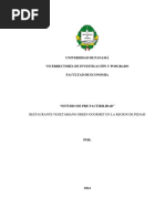 Para la elaboracin de esta matriz, enfocada al restaurante en estudio se utiliza una herramienta que consiste en la resolucin de un cuestionario Creado, desarrollado y registrado por Rafael Muiz Gonzlez. [Link], de acuerdo a la misma se concluye que: La empresa est posicionada en SITUACIN PARED: La puntuacin total que ha obtenido en su eje vertical le sita en una zona denominada pared (entre 1 y 2 puntos) Las empresas situadas en esta zona se caracterizan por su posicin negativa, es decir, arrastran el lastre de una imagen deteriorada en el mercado, sin llevar a cabo ninguna accin para mejorarla, aunque puedan estar obteniendo beneficios econmicos. En cuanto al eje horizontal, los resultados obtenidos le determinan el grado de solidez de su compaa a nivel de marketing. Cuanto ms se aproxime a los extremos, es decir, a la puntuacin mxima que viene marcada por el valor 5, ms favorable ser. En caso contrario, la solucin a su solidez pasar por potenciar el departamento de marketing dotndole de una mayor autonoma o profesionalidad en su gestin. Se encuentra, por tanto, ante una pared que es necesario escalar o derribar para tener un posicionamiento positivo. La actuacin de las empresas que estn ubicadas en esta zona de la pirmide debe ir encaminada a la reestructuracin de sus sistemas de marketing. Pgina 33