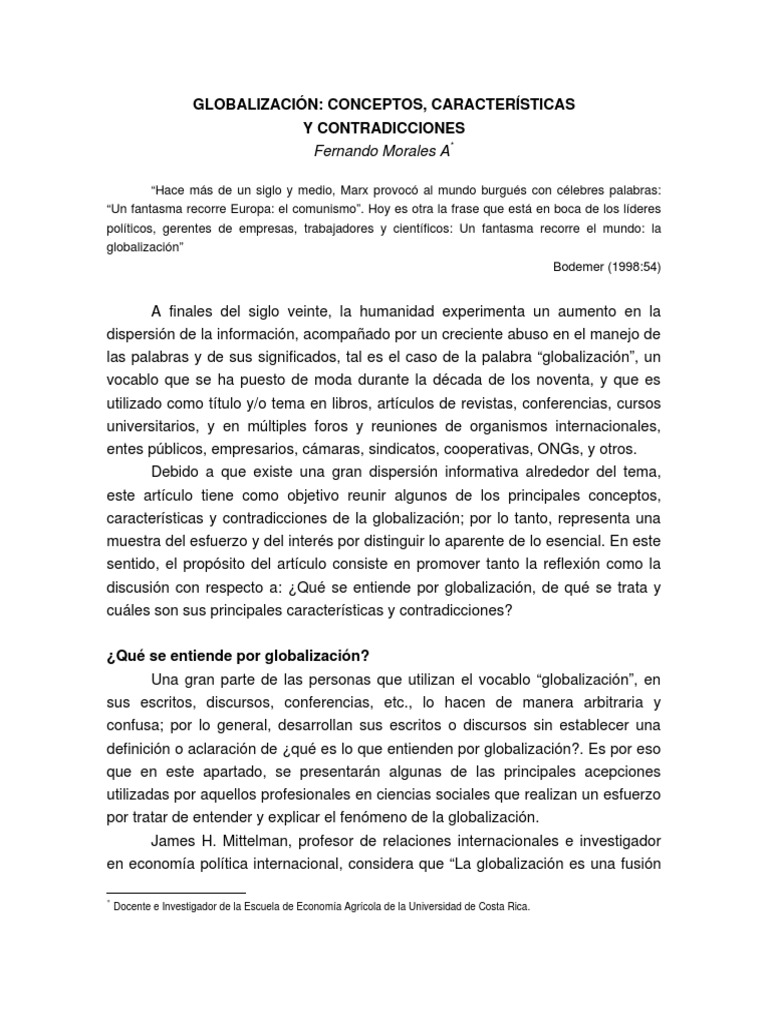GLOBALIZACIN: CONCEPTOS, CARACTERSTICAS Y CONTRADICCIONES Fernando Morales A*