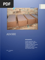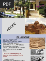 El adobe es una pieza para construccin hecha de una masa de barro (arcilla y arena) mezclada con paja, moldeada en forma de ladrillo y secada al sol; con ellos se construyen paredes y muros de variadas edificaciones. La tcnica de elaborarlos y su uso estn extendidos por todo el mundo, encontrndose en muchas culturas que nunca tuvieron relacin.