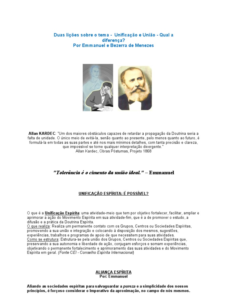 unificação. Amor de Jesus sobre todos, verdade de Kardec para todos.