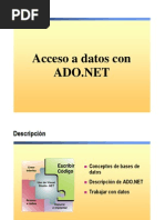 Los objetos DataSet, un componente fundamental para el acceso a datos en Microsoft .NET Framework, son objetos en memoria que pueden contener tablas, vistas y relaciones. En este artculo se indica cmo se llena un objeto DataSet con los resultados de una o varias consultas de una base de datos y cmo se obtiene acceso a estos datos una vez que se han cargado en el objeto DataSet.