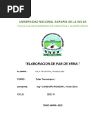 INTRODUCCIN. El pan es uno de los alimentos que tiene su origen desde las primeras pocas de la historia del hombre, siendo el alimento ms consumido por las sociedades desde la antigedad, formando parte de la dieta tradicional del ser humano. Con la elaboracin del pan a travs del tiempo se han encontrado otros tipos de alimentos derivados del pan, que con los tipos de ingredientes adicionales aportan nutrientes importantes para el ser humano.