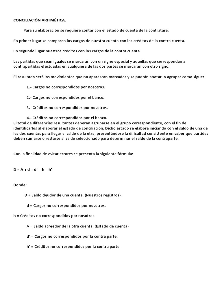 CONCILIACIN ARITMTICA. Para su elaboracin se requiere contar con el estado de cuenta de la contratare.