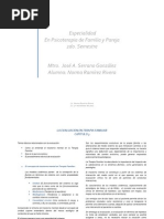 conflicto y por ello los miembros querrn tomar ms distancia (paradoja). [Marcar lmites entre subsistemas a travs de tareas teraputicas] Este se presenta fuera del espacio teraputico a travs de las tareas, es un modo de aumentar la intensidad extendiendo o alargando el proceso ms all del consultorio, llevndolo a la vida cotidiana de la familia, y es tambin un recurso para demarcar subsistemas o separarlos. La prctica de interacciones desacostumbradas en situaciones naturales promueve estructural. Extender o alargar un proceso, que es un modo de incrementar su intensidad, puede ser tambin un recurso parade marcar subsistemas o separarlos. En estas situaciones el contenido de la interaccin importa menos que el hecho de que ella se produzca. La prctica de interacciones desacostumbradas en situaciones naturales promueve el cambio estructural. Una tcnica diferente para crear fronteras en diadas demasiado unidas es el empleo de tareas paradjicas, el objetivo de esta tcnica es incrementar el conflicto entre los participantes, a lo cual seguir un incremento de su distancia recproca. el cambio