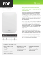 Radio Un radio de 802.11b/g/n y uno de 802.11a/n Operacin concurrente en 2,4 y 5 GHz Velocidad mxima de desempeo: 600 Mbit/seg Bandas de operacin: FCC (EE.UU.) 2.412-2.484 GHz 5.150-5.250 GHz (UNII-1) 5.725 -5.825 GHz (UNII-3) UE (Europa) 2.412-2.484 GHz 5.150-5.250 GHz (UNII-1) 5.250-5.350, 5.470-5.725 GHz (UNII-2) Interfaces 1 Ethernet 100/1000Base-T (RJ45) con 48V DC 802.3af PoE 1 Ethernet 10/100Base-T (RJ45) 1 conector de alimentacin CC (5 mm x 2,1 mm, con centro positivo) Antena Antenas omnidireccionales integradas Ganancia: 3 dBi en 2.4 GHz, 5 dBi en 5 GHz
