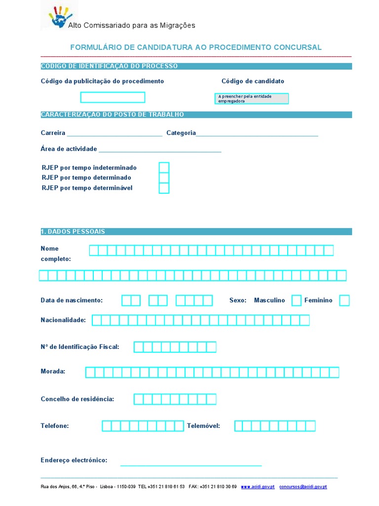 Rua dos Anjos, 66, 4. Piso - Lisboa - 1150-039 TEL +351 21 810 61 53 FAX: +351 21 810 30 69 www.acidi.gov.pt