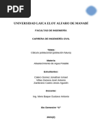 1r- se determina la tasa decrecimiento entre las fec'as: i @ $Pf; Po%.;n A . -onde: Pf: Poblacin m#s reciente $B623 'abitantes% Po: Poblacin inicial $6/12 'abitantes% n: Perodo entre las dos fec'as en a(os $6B a(os% i @ $B623; 6/12%.;6B A . @ 3.3.B1 E..B1 C 8omo la tasa de crecimiento es muy ba+a se selecciona una tasa de crecimiento de 6.2 C. *!- 9e utilizar# esta tasa de crecimiento para obtener la poblacin del 6332 Pf @ Po $. F i%n P6332 @ B623 $. F 3.362%.3 @ 2BB3 'abitantes P6362 @ B623 $. F 3.362%03 @ 1/.2'abitantes *.7 #+,-!- !e Sa,2ra/ 0n) !ste m<todo trata de establecer la poblacin de saturacin para un lugar determinado. Para aplicar este m<todo, es necesario constar con suficiente informacin del sitio, *ue permita obtener el n&mero de viviendas, el n&mero de lotes vacos *ue representar#n el n&mero de viviendas futuras y el ndice 'abitacional. !l m<todo se basa en determinar la cantidad m#)ima de 'abitantes *ue pueden alcanzar en el #rea del proyecto, y con ella dise(ar el sistema de abastecimiento. E5e.6l- 7.*) !n el e+ercicio anterior, el pe*ue(o poblado tena para .//2, B623 'abitantes, distribuidos en 5.2 viviendas, lo *ue corresponden a un ndice 'abitacional de 2./B 'abitantes;viviendas. Luego de un estudio en el sitio se determino *ue el n&mero de lotes *ue podran alcanzar es de .23. Lo anterior basado en el tama(o tpico de las viviendas e)istente en el a(o de estudio $.//2%. ?i+ando en n&mero de viviendas *ue pueden alcanzar en el #rea del proyecto, se podra determinar el n&mero de 'abitantes *ue cabran en el mismo. Giviendas totales @ Giviendas actuales F viviendas futuras @ 5.2 F .23 @ 142 viviendas Poblacin total @ &mero de viviendas ) el ndice 'abitacional @ 142 ) 2./B @ 2,.01 'abitante. 5
