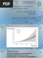 La determinacin del n&mero de 'abitantes para los cuales 'a de dise(arse el acueducto es un par#metro b#sico en el c#lculo del caudal de dise(o para una comunidad. !s necesario determinar las demandas futuras de una poblacin para prever en el dise(o las e)igencias, de las fuentes de abastecimiento, lneas de conduccin, redes de distribucin, e*uipo de bombeo, planta de potabilizacin y futura e)tensiones del servicio. Por lo tanto, es necesario predecir la poblacin futura para un n&mero de a(os, *ue ser# fi+ada por los perodos econmicos del dise(o La poblacin futura de una localidad se estima analizando las caractersticas sociales, culturales y econmicas de sus 'abitantes en el pasado y en el presente, para 'acer predicciones sobre su futuro desarrollo. !l uso de buen +uicio en la estimacin de la poblacin es importante puesto *ue, si el estimado es muy ba+o, el sistema ser# pronto inadecuada siendo necesario redise(ar, reconstruir y refinanciar. Por otra parte, una sobreestimacin de la poblacin resulta en una capacidad e)cesiva *ue debe ser financiada por una poblacin menor a un alto costo unitario y *ue nunca podr# ser usada, como resultado del deterioro o de la obsolescencia tecnolgica. *. #+,-!-" !e E", .a/ 0n !e la P-1la/ 0n F2,2ra La base de cual*uier tipo de proyeccin de poblacin son los censos. !n icaragua, la informacin necesaria para la seleccionar la tasa de crecimiento con la cual 'abr# de proyectar la poblacin de la ciudad en estudio, podr# conseguirse en las Instituciones siguientes: !l Instituto icarag,ense de Informacin de -esarrollo $I I-!%, mane+a la informacin relacionada con las poblaciones del pas *ue incluyen los documentos de los <imos censos realizados en los a(os ./01, ./23, ./40, ./50, .//2 y 6332. Informacin proveniente de Instituciones propias del lugar, tales como: 7lcaldas, ! !L, ! 787L y programa de erradicacin de la malaria del MI 97., informacin de estudios anteriores realizados por : ", universidades, etc. !n caso de *ue no 'ubiera datos confiables sobre la poblacin actual de la localidad en estudio, se podr#n realizar censos y;o muestreos de la poblacin ba+o el asesoramiento directo de I I-!. !)isten varias metodologas para la proyeccin de poblacin, sin embargo, se 'ar# una presentacin de los m<todos cuya aplicacin es m#s generalizada.