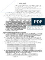 CELDAS GALVANICAS - LEY DE NERST 1. Escribe la notacin de la pila basada en la reaccin: Cl2 + H2 2 Cl- + 2 H+. Dibuja un esquema de la misma, indica cul ser el nodo y el ctodo y calcula su f.e.m. Dato: E Cl2/Cl - = 1,36 V 2. Predice la f.e.m. normal y las polaridades en las dos pilas formadas por los electrodos normales cobre-plata y cobre-plomo. Escribe las reacciones parciales y globales. Datos: E Cu2+/Cu = 0,34 V , E Ag+/Ag = 0,80 V , E Pb2+/Pb = - 0,13 V 3. Dada la pila Fe 2+ /Fe3+ || MnO4 -/Mn 2+ a) Escribir las reacciones correspondientes a cada electrodo y la reaccin total. b) Si todas las concentraciones fueran 1 M: calcular el potencial de la pila, indicar cul sera el electrodo positivo, cul el negativo y en qu sentido fluiran los electrones en el circuito externo, c) Dibujar un esquema de esa pila y explicar brevemente el papel del puente salino. Datos: E (MnO4 - /Mn 2+) = 1,510 V; E (Fe 2+/Fe3+) = 0,771 V 4. Un compartimiento de electrodo consiste en una tira de plata inmersa en una disolucin de AgNO3, y el otro contiene una tira de hierro en una disolucin de FeCl2. La reaccin global de la celda es: Fe(s) + 2Ag+(ac)Fe2+(ac) + 2Ag(s) a) Escriba las medias reacciones que se llevan a cabo en los dos compartimientos. (b) Cul electrodo es el nodo, y cul el ctodo? (c) Indique los signos de los electrodos. (d) Fluyen los electrones del electrodo de plata al electrodo de hierro, o del hierro a la plata? (e) Calcule la Fem estandar de la celda. 5. Una celda voltaica que emplea la reaccin: PdCl4 2-(ac) + Cd(s)Pd(s) + 4Cl-(ac) + Cd2+ (ac) tiene un potencial estndar de celda medido de +1.03V. (a) Escriba las dos reacciones de media celda. (b) Con base en datos del apndice E, determine el Ered de la reaccin en la que participa el Pd. (c) Dibuje la celda voltaica, rotule el nodo y el ctodo e indique el sentido del flujo de electrones. 6. Calcule el E, el E y el de las siguientes reacciones de celda: a) Mg(s) + Sn2+(ac) Mg2+(ac) + Sn(s) [Mg2+] = 0.045 M, [Sn2+] = 0.035 M b) 3Zn(s) + 2Cr3+(ac) 3Zn2+(ac) + 2Cr(s) [Cr3+] = 0.010 M, [Zn2+] = 0.0085 M 7. Se construye una celda voltaica que emplea las siguientes reacciones de media celda: Cu+(ac) + e Cu(s) / I2(s) + 2e- 2I- (ac) La celda funciona a 298 K con [Cu+] = 2.5 M y [I-] = 3.5 M. (a) Determine el E de la celda con estas concentraciones. (b) Cul electrodo es el nodo de la celda? (c) Si [Cu+] fuese igual a 1.4 M, a qu concentracin de I- tendra la celda un potencial de cero? Datos: E Cu=0.521 V; E I= 0.536 V 8. Se construye una celda voltaica basada en la reaccin siguiente: Sn2+(ac) + Pb(s) Sn(s) + Pb2+(ac) (a) Si la concentracin de Sn2+ en el compartimiento catdico es 1.00 M y la celda genera una fem de +0.22 V, Cul es la concentracin de Pb2en el compartimiento andico? (b) Determine la constante de equilibrio para la reaccin. 9. Se construye una pila en la cual uno de los electrodos es Zn metlico sumergido en una disolucin acuosa 1,0 M de ZnSO4. El otro electrodo est constituido por un electrodo de Ag metlica sumergida en una disolucin de iones Ag+ de concentracin desconocida. a) Escribir los procesos que tienen lugar en cada electrodo y el proceso global de la pila. b) Calcular la concentracin de los iones Ag+ de la disolucin correspondiente, sabiendo que el potencial de la pila es 1,2 V. c) Calcular la constante de equilibrio del proceso que tiene lugar en la pila. LUIS VACA S AYUDANTE