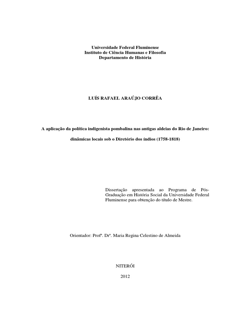 A aplicao da poltica indigenista pombalina nas antigas aldeias do Rio de Janeiro: