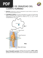 OBJETIVOS Determinar el centro de gravedad de una persona en posicin decbito prono. Investigar la variabilidad del centro de gravedad en sistemas biomdicos. FUNDAMENTO TERICO I. PESO ( w ) : Fuerza gravitacional w = m.g m; masa g; 9,8 m/s2 = 980 cm/s2
