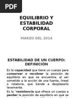 La posicin tumbada es, con respecto a la influencia de la fuerza de la gravedad en el cuerpo, la ms sencilla, puesto que el cuerpo est totalmente apoyado y fijado por el peso. Coincide el centro de gravedad con el centro giratorio de rotacin, se encuentran uno junto a otro, as que slo hace falta una fuerza muscular insignificante para conseguir el equilibrio entre todas las fuerzas que tienen lugar en el cuerpo. Investigar la variabilidad de centro de gravedad en sistemas biomdicos. CUADRIPEDIA El peso del cuerpo se reparte casi de la misma manera entre los brazos y las piernas. La superficie de apoyo que se encuentra entre los brazos y las piernas es grande. El centro de gravedad del cuerpo en esta posicin se ha trasladado de la regin craneal al tronco. La vertical que cae desde el centro de gravedad del cuerpo se sita por delante de las rodillas en la superficie de apoyo por lo que cuando se separen las manos de la superficie de apoyo, el centro de gravedad corporal tiene que ser llevado haca atrs para evitar la cada del cuerpo.