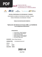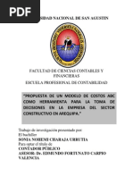 obtener Ttulo de Ingeniero en Informacin y Control de Gestin y Contador Auditor. Aplicacin del sistema de costeo ABC. Unidad de Hospitalizacin Psiquitrica de Corta Estada. Concluye en que el Sistema de costeo ABC no slo tiene por objetivo asignar los costos a los productos o servicios, sino que tambin gestionar de una manera eficiente los recursos y junto con ello poder administrar mejor los procesos. Por lo tanto nos ayudar a tomar mejor decisiones dentro de una institucin.