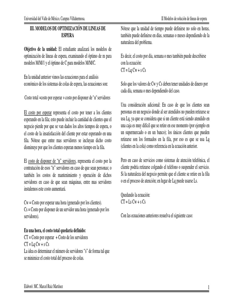 III. MODELOS DE OPTIMIZACIN DE LINEAS DE