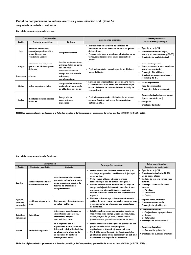 Cartel de competencias de lectura, escritura y comunicacin oral (Nivel 5)