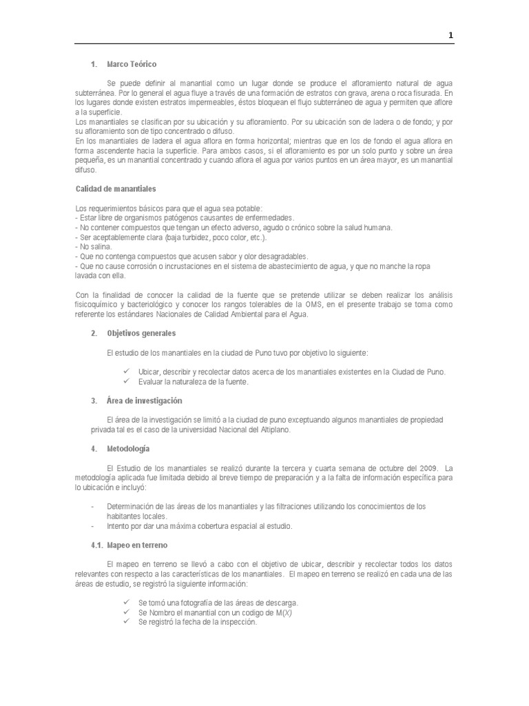 Anlisis fsico-qumico y bacteriolgico del manantial # 1