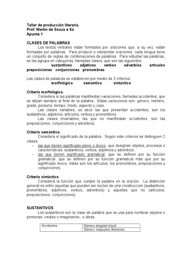 caractersticas: sustantivos, verbos, adjetivos $ adverbios.