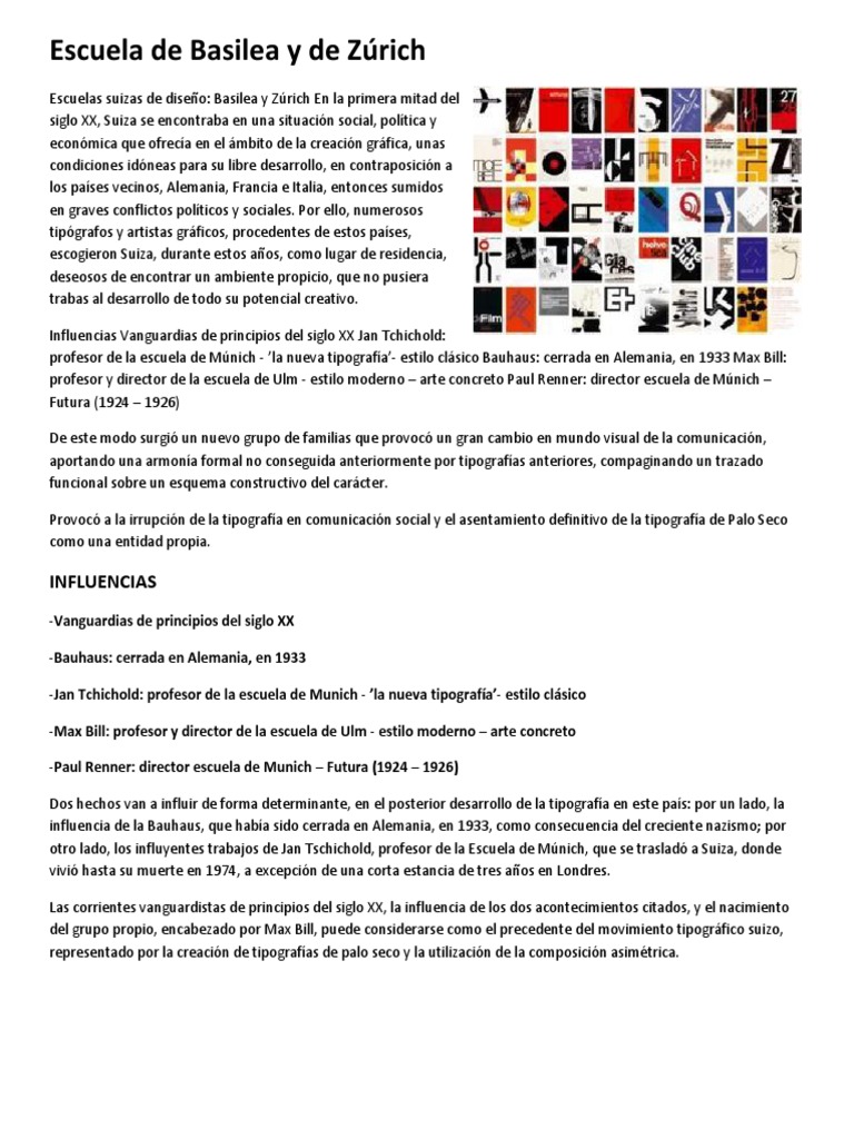 otro lado, los influyentes trabajos de Jan Tschichold, profesor de la Escuela de Mnich, que se traslad a Suiza, donde