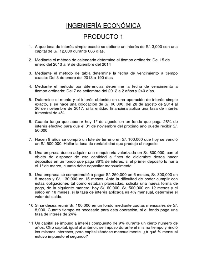 1. A que tasa de inters simple exacto se obtiene un inters de S/. 3,000 con una