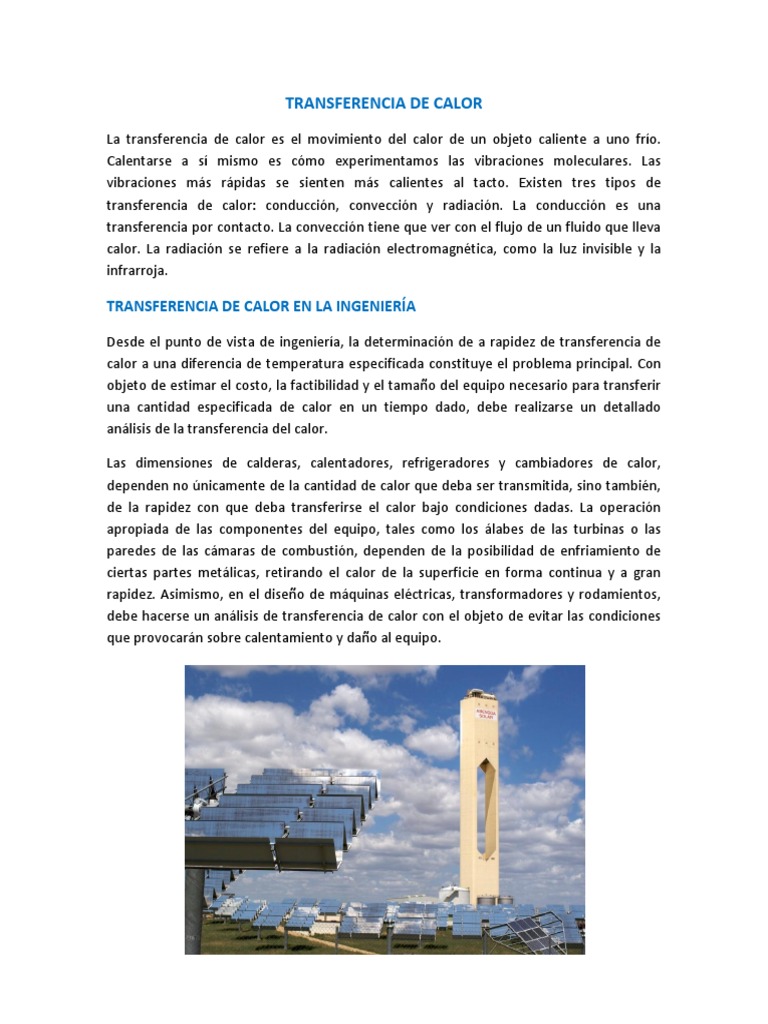 transferencia de calor: conduccin, conveccin y radiacin. La conduccin es una