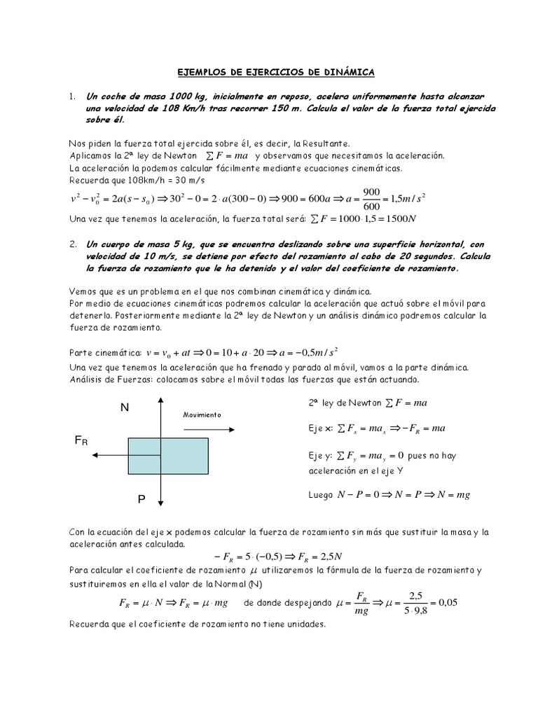 EJEMPLOS DE EJERCICIOS DE DINMICA