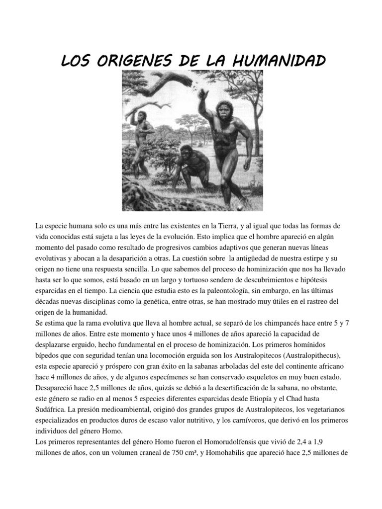 origen no tiene una respuesta sencilla. Lo que sabemos del proceso de hominizacin que nos ha llevado