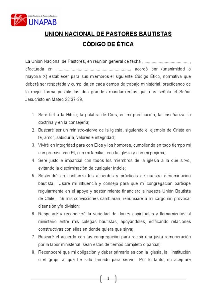 La Unin Nacional de Pastores, en reunin general de fecha ........................................,