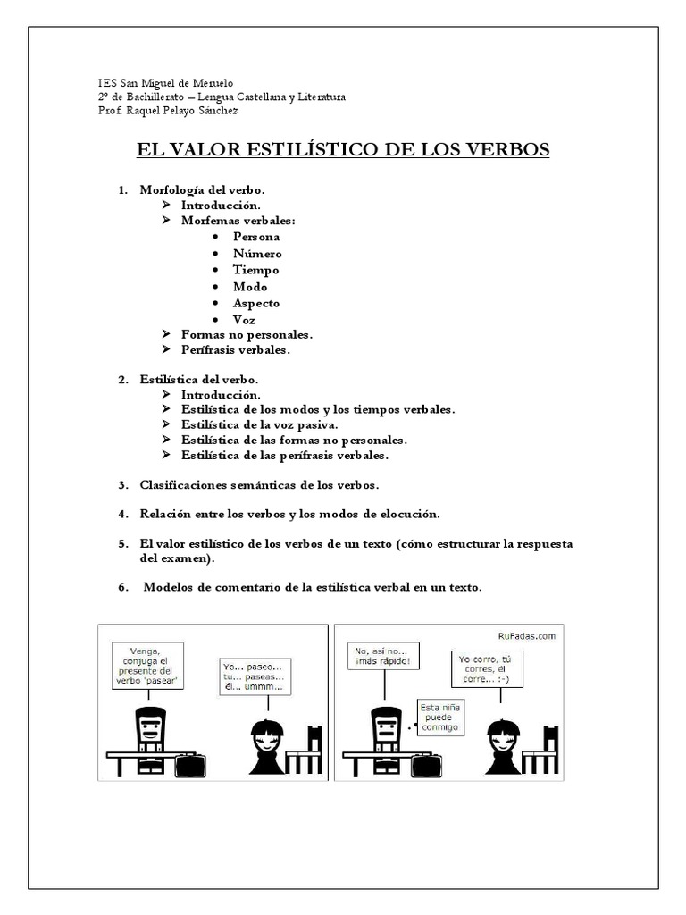 6. Modelos de comentario de la estilstica verbal en un texto.