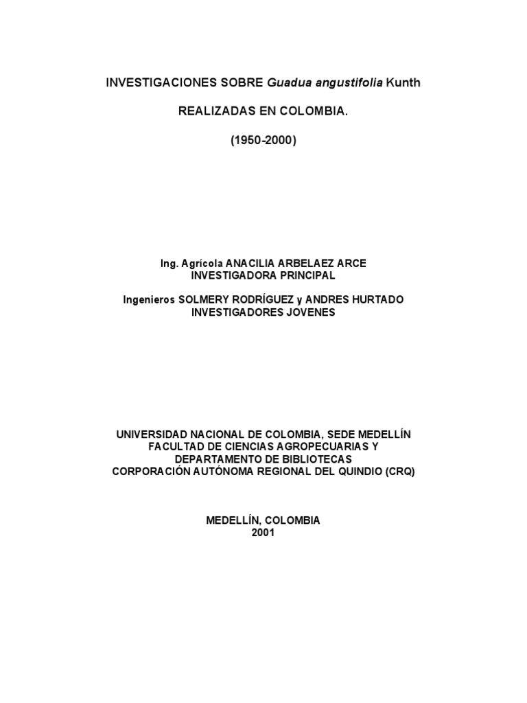 Actual de la Investigacin sobre el Recurso Guadua, entre la Universidad Nacional de Colombia,
