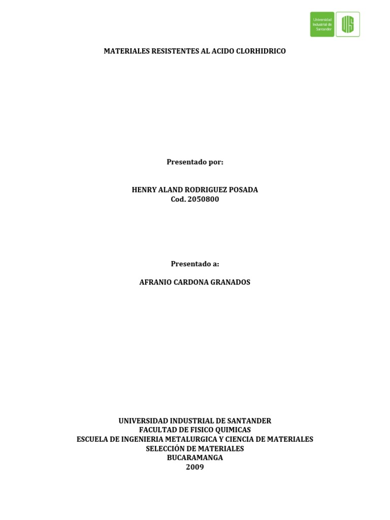 MATERIALES RESISTENTES AL ACIDO CLORHIDRICO