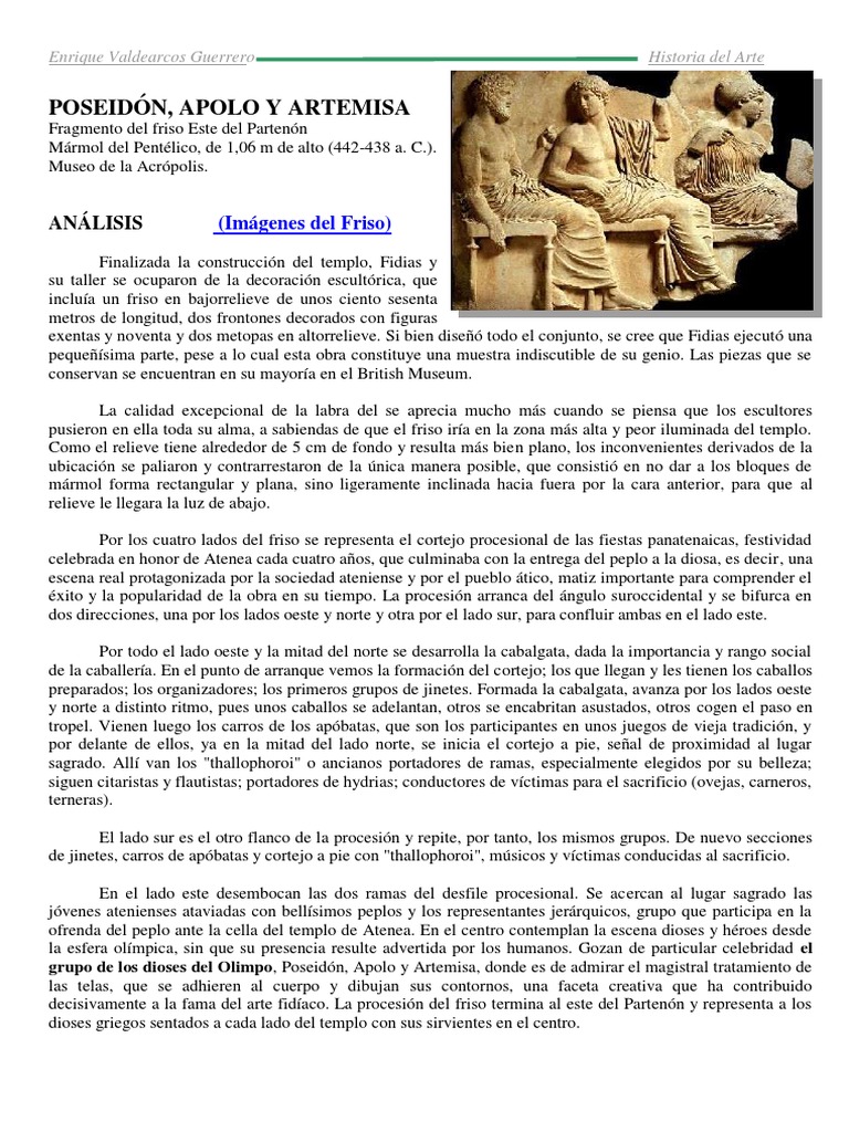 Fidias: (Atenas, h. 490 a.C.-?, 431 a.C.). Fue el artista ms famoso del mundo clsico, y el maestro que