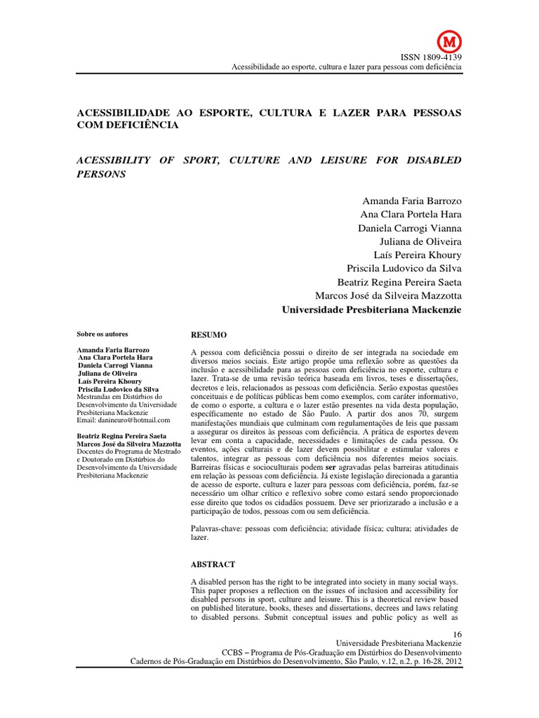 de acesso de esporte, cultura e lazer para pessoas com deficiência, porém, faz-se