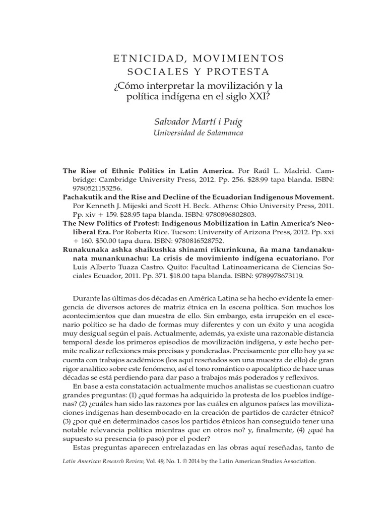 and the Rise and Decline of the Ecuadorian Indigenous Movement se basan en sealar