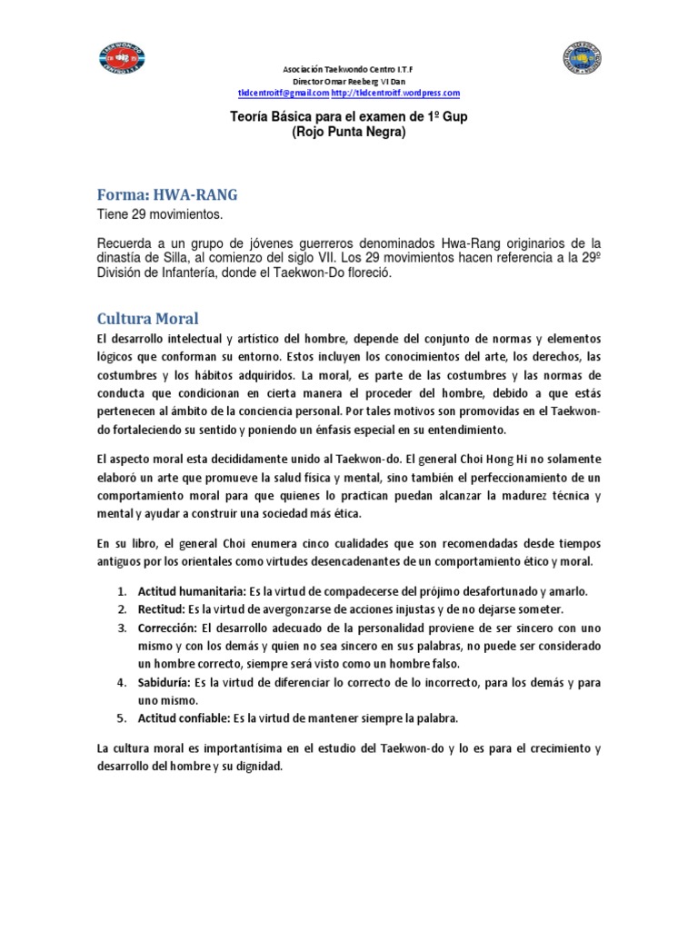 La cultura moral es importantsima en el estudio del Taekwon-do y lo es para el crecimiento y