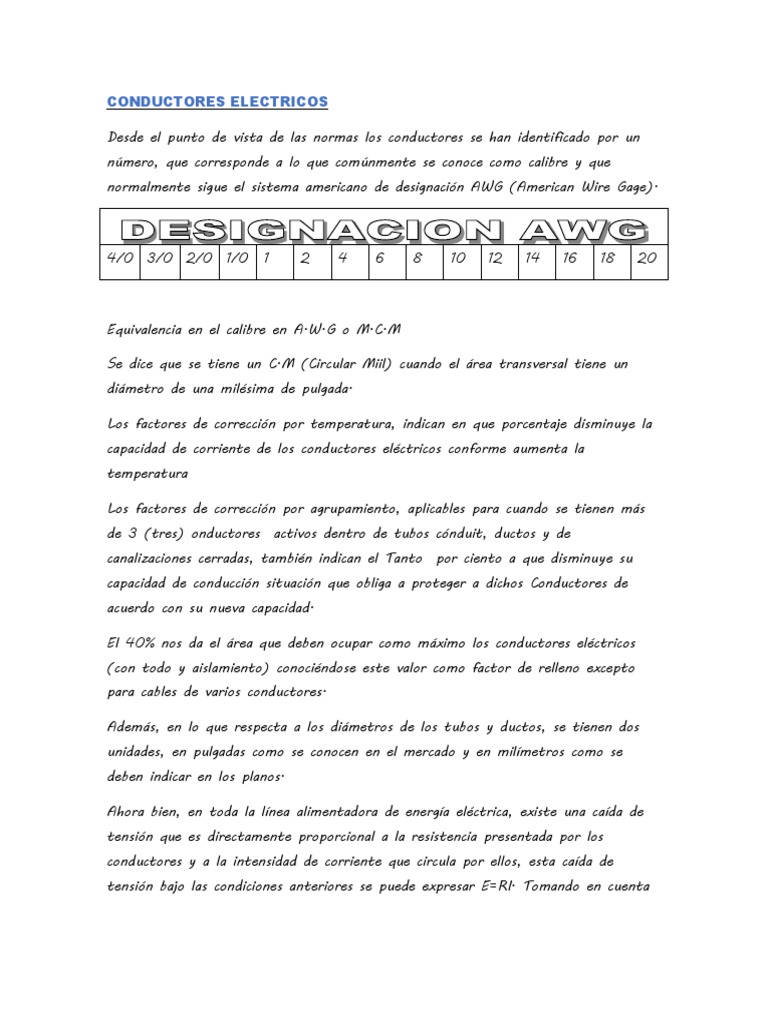 Para el clculo exacto del calibre de los conductores elctricos, deben tomarse en