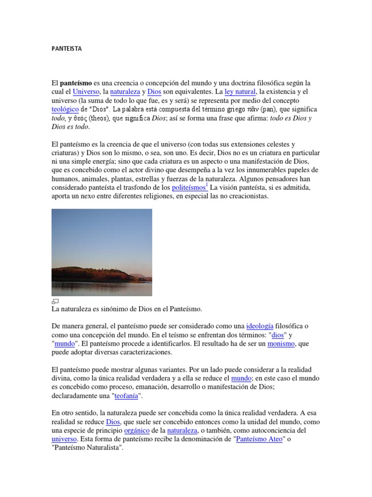 El pantesmo es una creencia o concepcin del mundo y una doctrina filosfica segn la